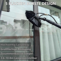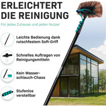 Reinigung Solar & Photovoltaik Waschbürste bis zu 6m - Waschbürste mit Teleskopstiel - Terrassendach Reiniger - Teleskopstange Fenster Reinigung