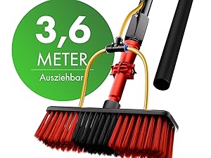 Marke BoomDing Farbe Schwarz-rot Griffmaterial Softtouch Spezifische Verwendungsmöglichkeiten für Produkt Reinigung von PV Anlagen, Wintergärten, Terrassendächern, Fenstern, Schneeräumung von Solarmodulen Produktabmessungen 30L x 10B x 660H cm Effizienzerhaltung: Entfernung von Vogelkot, Ruß, Feinstaub, Insekten, Blätter, Sand oder Pollen - mit Hilfe der teleskopischen Wasserbürste erhältst Du den Glanz und die Leistungsfähigkeit. Umweltfreundlich: Nichts als Wasser und der BoomDing Fensterreiniger genügen, um Deine PV-Anlage, Dein Terrassendach oder Deinen Wintergarten zu reinigen. Immer die richtige Länge: Immer die passende Länge des Photovoltaik Besen bis zu 7 Metern dank der Verwendung v